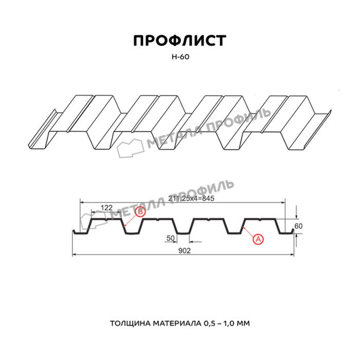 Профлист Металл Профиль Н-60 0,9 Цинк Бесцветный Показать информацию