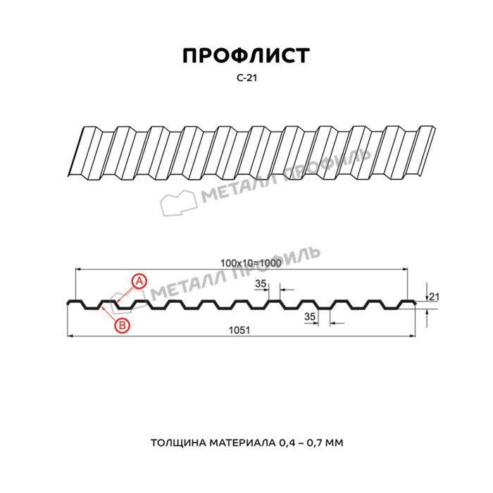 Профлист С21 для кровли Металл профиль