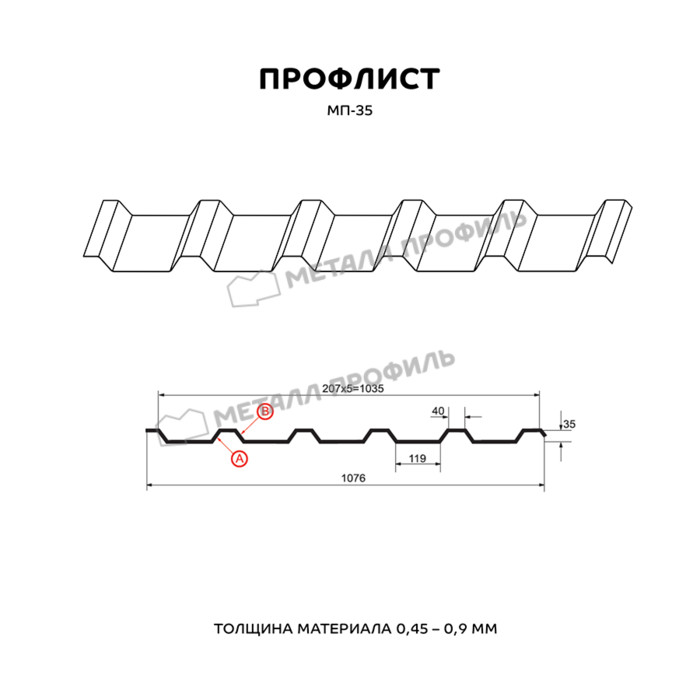 Профлист Металл-Профиль МП-35 Полиэстер 0.45 мм RAL 1015 Светлая слоновая кость