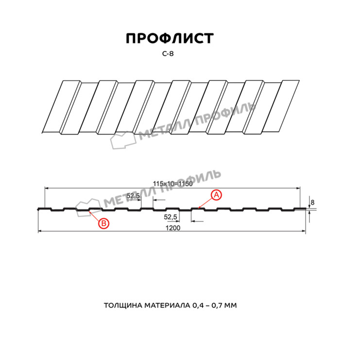 Профлист Металл Профиль С-8 0,7 Полиэстер RAL 3011 Коричнево-красный | A
